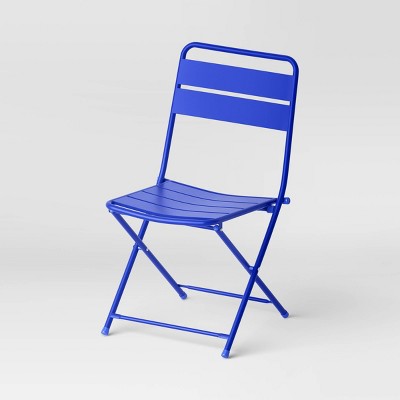 Room EssentialsKeep your patio sleek and simple with the Metal Slat Folding Chair from Room Essentials™. This blue patio chair features a slatted design for a sta...