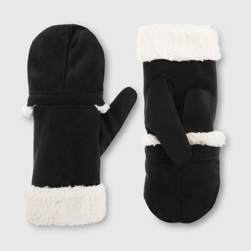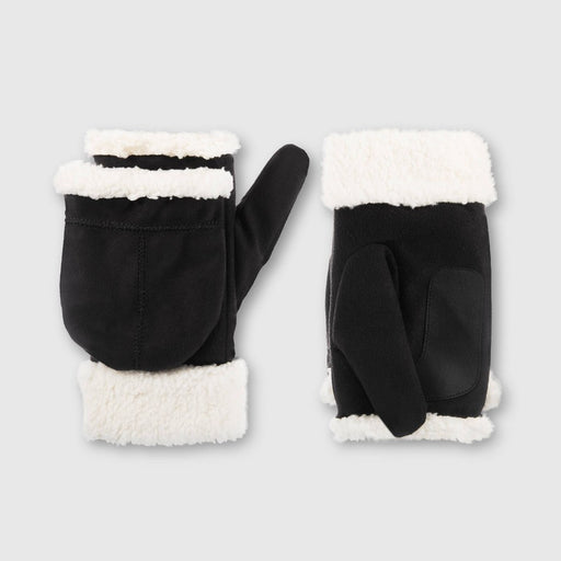 Isotoner Adult Recycled Microsuede Flip Top Mittens - Black L/XL