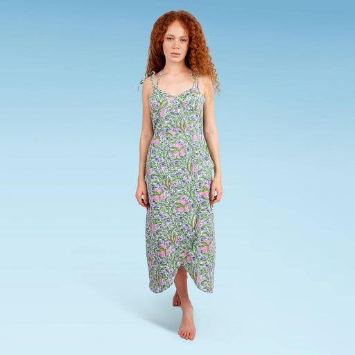 View full detailsLiberty & Justice Women's Tied Strap Slit Front Cover Up Dress - Green/Pink Botanical Print M