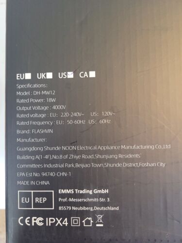 FlashvinNEW!!! FLASHVIN BUG ZAPPER DH-MW12 4000volt ROHS Compliant.