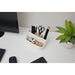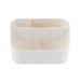 This nifty organizer is perfect to keep your desktop, countertop or workspace tidy and clutter-free. The sleek white with bamboo dividers fits with any decor. This organizer has 4 compartments that perfectly fits pens, pencils, scissors, notes, clips and other desktop items. This unit measures 7.5" W x 4.5" L x 4.1" H. Additional coordinating items available (sold separately).