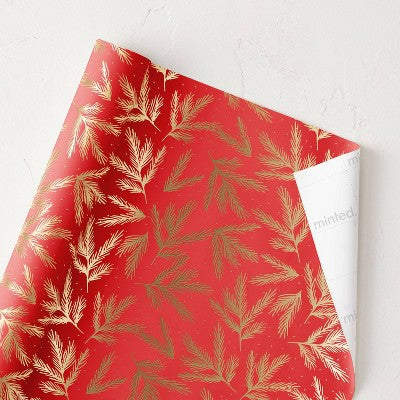 Minted Foil Gilded Branches Luxury Gift Wrapping Paper Red/Gold (LOCAL PICKUP ONLY)