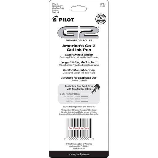 View full detailsPilot 3ct G2 Gel Pens Ultra Fine Point 0.38mm Black Ink: Retractable, Rubber Grip, Stationery & Office Supplies