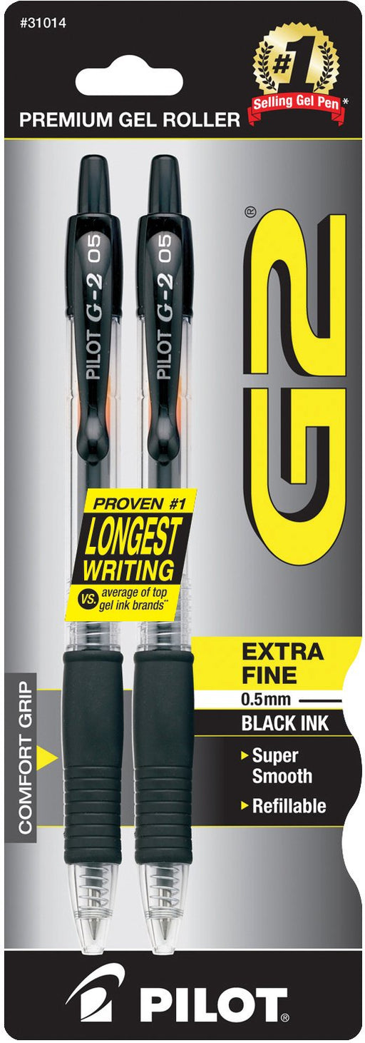 View full detailsPilot, G2 Premium Gel Roller Pens, Extra Fine Point 0.5 Mm, Pack Of 2, Black