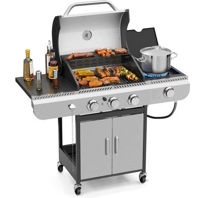 R.W. FLAME BBQ Gas Grill – 34,000 BTU Propane, Enamel Grates, Removable Grease Tray, Ideal for Outdoor Cooking, Camping, Backyard, Patio & Deck (LOCAL PICKUP ONLY)