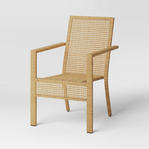 ThresholdBring texture and style to your outdoor decor with the Stacking Steel Outdoor Patio Chairs from Threshold™. This brown chair features a caned desig...