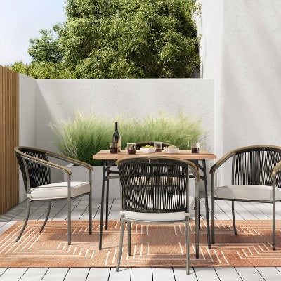 2pc Apex Mixed Material Outdoor Patio Dining Chairs Arm Chairs Black - Threshold: Aluminum & Steel Frame, Removable Cushions (LOCAL PICKUP ONLY)
