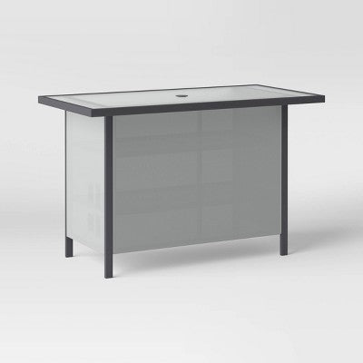 Room EssentialsSet up a bar in your patio or backyard with this Patio Bar Table from Room Essentials™. Set on a gray metal frame, this bar table comes with a glas...