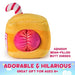 Sitrus Squeeze is an all-natural, 100% fresh-squeezed treat! This sweet striped juice box features two-tone, velvety-soft orange plush with adorable nutrition fact and fruit graphics and a red-and-white striped straw sticking up from the top. Flip for a large, juicy orange boasting a leafy green stem and squishy, hot pink buns. Meet the Snacky Seats! This bootylicious bunch of fabulous foods can’t wait to flip for you. Every delectable plush in this series shows a tasty 2-in-1 transformation with a food-themed design, like melty s’mores, colorful cereal and candy, fast food, and more to satisfy every craving and keep you smiling. These food-forward friends are tushy treats for every taste! Collect them all and explore the entire Cheeky Chonks Kingdom, where a world of bootyful friends awaits! Available styles: Bubble Bootea, Sitrus Squeeze, Toasty Buns, Straw-bootie, Cheeky Cherry, Salty Squeeze, Freeze Cheeks, Bubble Bum, Cheeky Os. Best cheeks forward! Cheeky Chonks are soft, super-cute 2-in-1 plushies that flip from one delightful design into another, showing off their squishy-soft butts in every form. A convenient 4.5” size makes these plushies the perfect addition to any collection, bedroom, desk, locker, and anywhere else you might need a cheeky grin. They’re also travel sized for the backpack or car ride, and they even act as fun sensory toys and fidget toys, too! These adorable soft toys are made to fit in your hands and offer a satisfying squish with every squeeze, from their fluffy plump bodies to their squishy bean-filled butts. Each is made of velvety-soft, surface-washable plush materials for easy, convenient cleaning and endless flipping. These collectible cuties are exciting gifts for kids, kawaii plush collectors, and any kid at heart. Collect them all! Appropriate for ages 4 and up. Ships in a protective poly bag. Includes: 1 Cheeky Chonks 4.5” Reversible Plush Toy, Poly Bag