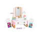 Relax, Refresh, & Renew with the Disney Princess Style Collection Deluxe Day Spa vanity. Features a real working sink and a pretend facial steamer along with the latest play contemporary skincare essentials. With the push of a button, turn on the real working sink with running water. Wash & pretend to “steam” your face with the realistic facial steamer, refresh with a play mask, and unwind in style! Up your self-care game with the spa headband, pretend cleanser bottle, play facial pads, wash cloth and more! Conveniently stash everything in the storage drawer for easy clean up. Play for hours and dive into a world of glamour and self-care with the Deluxe Day Spa!
