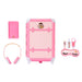 The Disney Princess Style Collection World Traveler Play Suitcase has everything a princess needs to travel in style! All your travel essentials are covered, and they are stored perfectly in the oh-so-chic and updated play suitcase. Pretend to secure your belongings with the faux combination lock. Stay connected at the airport by plugging in your play tablet, or freshen up before take-off with the play lip balm and hand sanitizer. The real working wheels and retractable handle make sure you always catch your flight! Relax inflight with the play headphones and eye mask. With a passport and ticket in your folio, you're set to jet on adventures to faraway places!