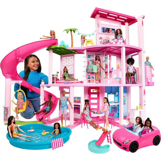 BarbieKids can host the ultimate pool party with the Barbie Dreamhouse! This deluxe doll house has the tallest slide in the Barbie Dreamhouse series to d...