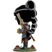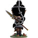 Standing at 5.3 inches tall with her mouth agape as she gazes down at the golden artefact held in her outstretched hands, her long black hair is pulled back into a long ponytail and wrapped in an intricate metal holding as a gemmed circlet sits around her head. With the wooden handle of a long spear strapped to her back and its long golden blade pointing upwards, she wears an outfit of leather armor covered in a thick grey chains and thick black boots.
