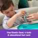 Explore the depths of the ocean with the Kinetic Sand Project Planet Deep Sea playset. This Kinetic Sand kit will spark imagination as kids dig and discover an ocean of unique multipurpose sea creature tools. Project Planet is Kinetic Sand’s line of eco friendly sustainably minded toys, made using 100% ocean-bound recycled plastics. Scoop through 24oz of white, teal, and blue Kinetic Sand with the seashell, revealing the hidden characters in each layer. Mold and scoop with the stingray, slice sand and mold a baby dolphin, and grate sand with the whale shark, mimicking underwater patterns. Kids can learn about ocean biodiversity with the fact card and after play, snap the container’s lid closed for convenient storage. The One and Only Kinetic Sand is made from natural sand that sticks to itself for easy cleanup. Create again and again and let it flow – it’s so satisfying. An alternative to arts and crafts modeling clay, Kinetic Sand is a welcome addition to the sensory bin or sensory table, activities time and Montessori toys. Kinetic Sand promotes fine motor skills and creativity in kids through independent tactile play. Feel the future with Kinetic Sand Project Planet Deep Sea. Includes: 24oz Kinetic Sand, 1 Container with Lid, 1 Stingray Scoop/Mold, 1 Dolphin Cutter/Mold, 1 Whale Shark Grater, 1 Shell Scoop, 1 Eco Info Card