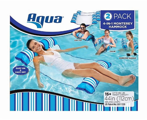 View full details44 Inch Aqua Leisure 4 In 1 Blue & White Montgomery Hammock Swimming Pool Float - Lounge, Chair, Drifter and Exercise Saddle