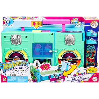 Hot WheelsThe Hot Wheels Skate Boombox Skate Park Playset throws it back to the 80's as an old-school boombox featuring bright colors and rad graphics. Hit t...