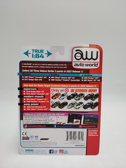 Auto WorldAUTO WORLD 1991 Chevy Camaro 1996 Pontiac Fireball ConvertibleNumber of Pieces: 2Dimensions (Overall): 7.5 Inches (H) x 5.5 Inches (W) x 1.5 Inches...