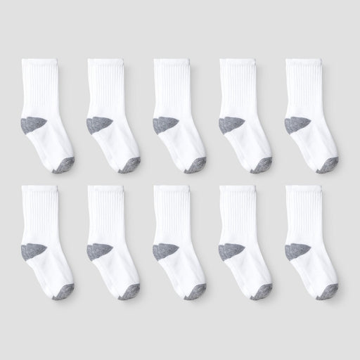 Boys' 10pk Athletic Crew Socks - Cat & Jack White M