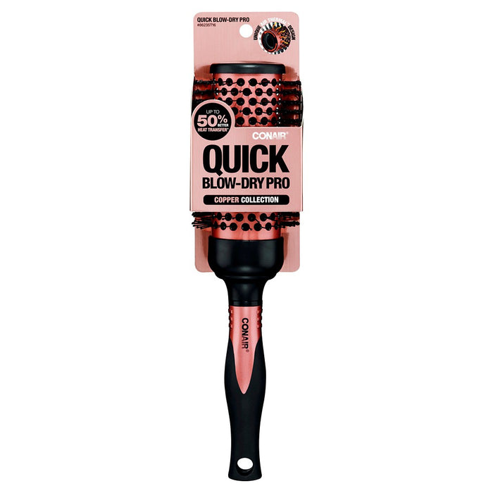 Need a blow-dryer-friendly brush that gives you the faster, easier results you need for your brush-and-go lifestyle? Be your beautiful best with the Quick Blow-Dry Pro Air Thermal Medium Round Hairbrush from Conair. This super-fast-drying styling essential features a copper-coated barrel that provides up to 50% better heat transfer*, while the nylon bristles glide through hair for exceptionally smooth, snag-free brushing. Thanks to the unique Air Thermalâ„¢ design of this round barrel hairbrush that won't tug or tear, you'll be ready to go in next to no time, with salon-worthy hair styled perfectly at home!*Metal plate provides up to 50% better heat transfer when compared to Conair nylon plastic round brushes.