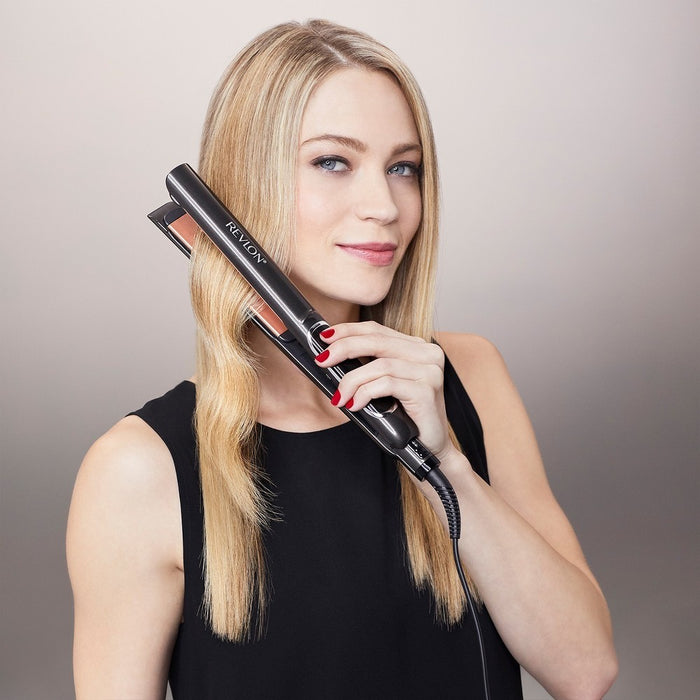 The 1” Professional XL Copper Ceramic Digital Straightener is designed to help you STYLE LIKE A PRO. Its Copper Ceramic Technology provide a superior heat transfer for 81% less breakage and 63% more shine. The XL Plates allow you to style larger sections of hair for faster styling and a smooth, one-pass glide for all-day straight hair. An advanced Digital Heat Display delivers high heat up to 455°F for all hair types with 10-second fast heat up, while the Smart Temperature Recall feature stores your preferred heat setting. The XL Copper Ceramic Digital Straightener features a sleek, ergonomic design with worldwide dual voltage, making it easy to style wherever you go.