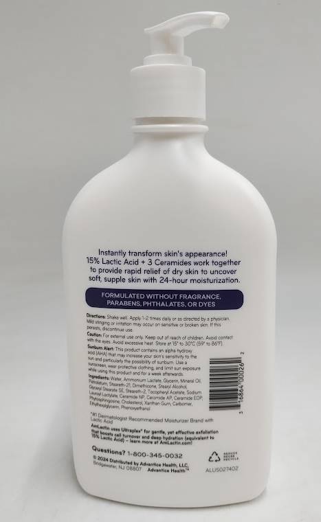 AmLactinInstantly hydrate and help relieve rough skin with AmLactin Daily Moisturizing Body Lotion. Formulated with 12 percent lactic acid, this daily mois...