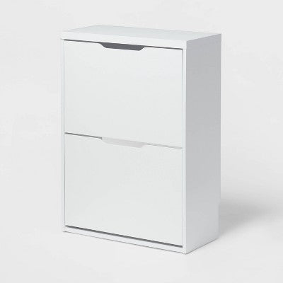 View full detailsLaminate Pivot Open Shoe Cabinet White - Brightroom: Shoe Organizer, Holds 12 Pairs, Wood Laminate, Freestanding (LOCAL PICKUP ONLY)