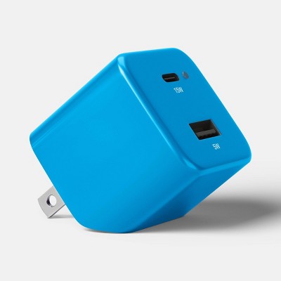 View full detailsDual Port 20W Translucent Jelly Wall Charger - heyday Peri-Blue: USB & USB-C Ports