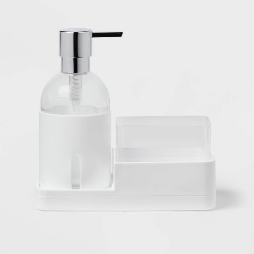 BrightroomRefresh your kitchen or bath space with the Plastic Soap Pump with Silicone Holder with Caddy & Tray from Brightroom™. This white soap pump is ...