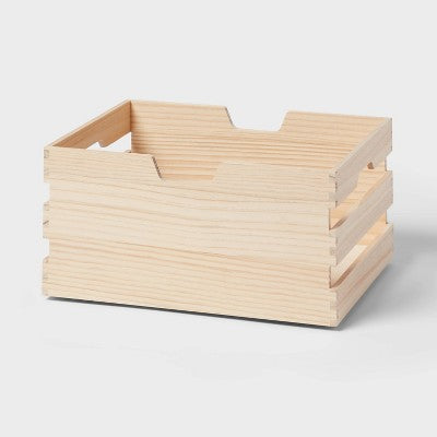 BrightroomKeep your frequently used items in place in this Small Wood Bin from Brightroom™. This wooden open-top bin has slats on the sides and cutouts for e...