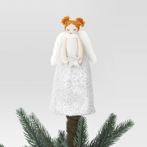 View full details6.5" Fabric Angel in Sequin Dress Holding Silver Star Mini Christmas Tree Topper - Wondershop