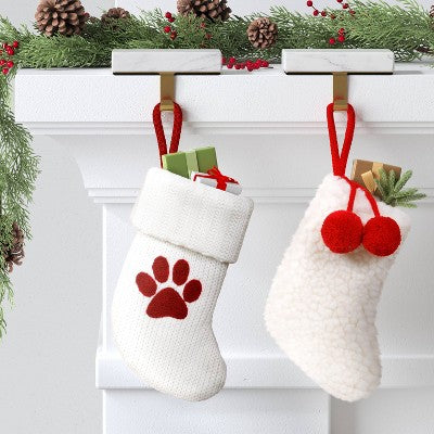 View full details8.5" Faux Shearling Mini Christmas Stocking with PomPoms White/Red - Wondershop
