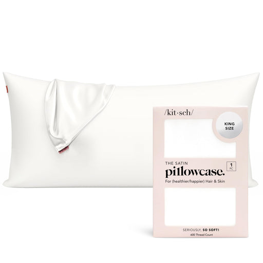 View full detailsKitsch Satin Pillowcase, Softer Than Silk Pillow Cases King, Cooling Pillow Covers, Satin Pillowcase With Zipper For Hair, Skin & Quality Sleep, Wrinkle-Free & Smooth, King Size 19"X36", Ivory