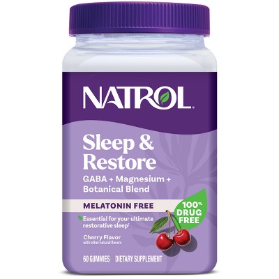 Natrol Sleep & Restore Melatonin Free Gummies for Restorative Sleep with Magnesium, GABA - Cherry - 60ct