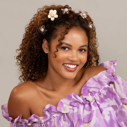 View full detailsscunci be-u-tiful Pearl Embellished Floral Mini Claw Clips - Neutral - 4pcs