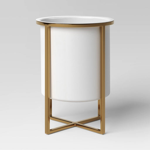 View full details2pc Iron Indoor Outdoor Planter Pot with Stand White/Brass 9"x9"x12.1" - Threshold