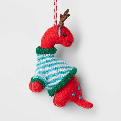 WondershopAdd some dino-mite delight to your holiday tree with this Fabric Brontosaurus with Antlers and Striped Sweater Christmas Tree Ornament from Wonders...