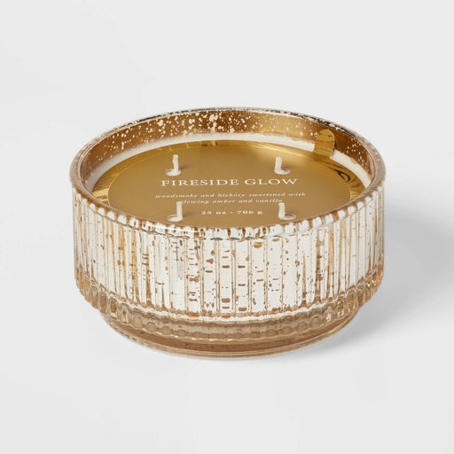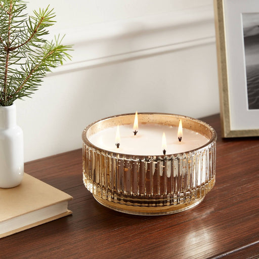 View full details4-Wick Ribbed Mercury Glass Fireside Glow Footed Jar Candle Gold 25oz - Threshold