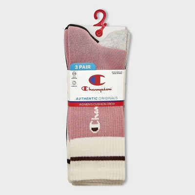 ChampionThese women's cushion Crew socks combine comfort and an athletic design with with classic varsity stripe detailing . Featuring a great Crew fit th...