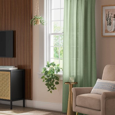View full details54"x63" Light Filtering Solid Farrah Window Curtain Panel Sage Green - Threshold: Ribbed Cotton & Recycled Polyester