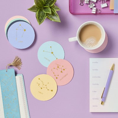 SpritzAdd a touch of celestial charm to your gatherings with the Zodiac Coaster Set by Spritz™. This set includes 12 round coasters, each featuring a uni...