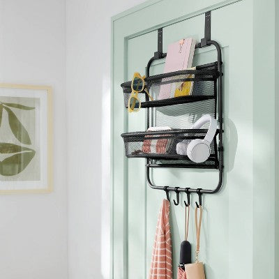 2 Tier Over the Door Organizer with Hooks 1pc - Brightroom