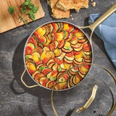 View full details5qt Nonstick Ceramic Coated Aluminum Saute Pan with Champagne Handle Cream - Figmint