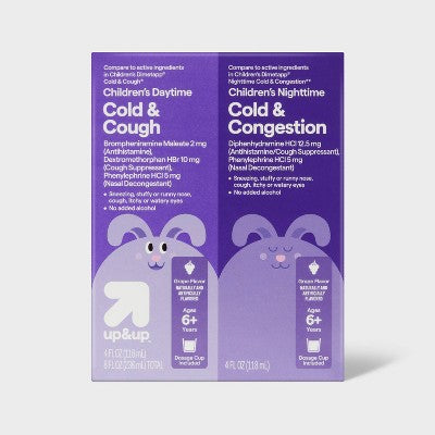 View full detailsChildren's Multi-Symptom Day & Night Cold Relief Liquid - Grape - 2pk/4 fl oz - up&up