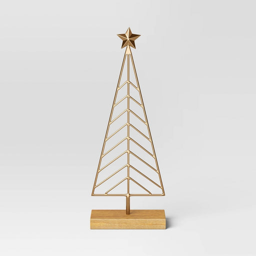 View full details16" Metal Christmas Tree Figurine with Wood Base - Wondershop Gold