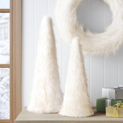 WondershopAdd a delightful touch to your winter scene with this Faux-Fur Christmas Tree Sculpture from Wondershop™. This tree decorated with white faux fur a...