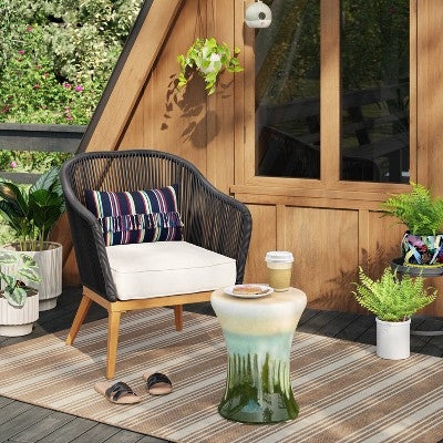 ThresholdBeautifully accent your outdoor gathering space with this Glazed Ceramic Accent Table from Threshold™. This ceramic accent table showcases a clean-...