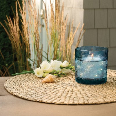 ThresholdCreate a refreshing ambiance with the Glass LED Citronella Sun Salt Sea Scented Candle from Threshold™. This blue jar candle showcases an asymmetri...