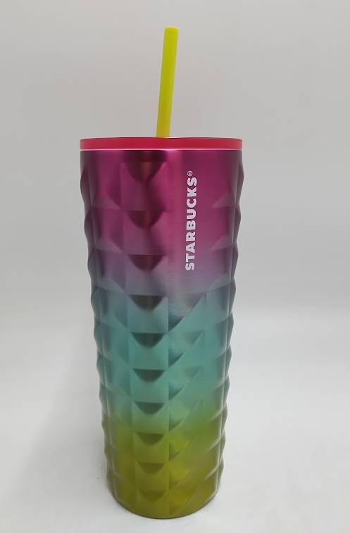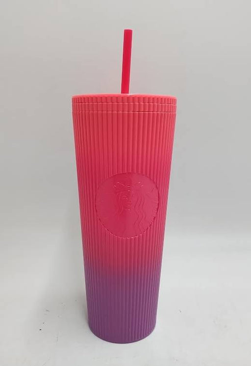 StarbucksTextured Double-wall Plastic, Tinted liner, PVD lid and outer, Prismatic straw, Embossed sirenOmbre: Pink/PurpleDimensions (Overall): 11.1 Inches (...