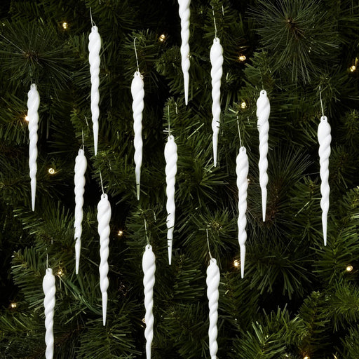 14ct Glitter Icicle Christmas Ornament Set White - Wondershop