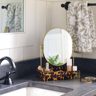 ThresholdKeep your vanity looking stylish and modern with the Leopard Print Tray with Gold Mirror from Threshold™. This gold-tone mirror comes with a built-...